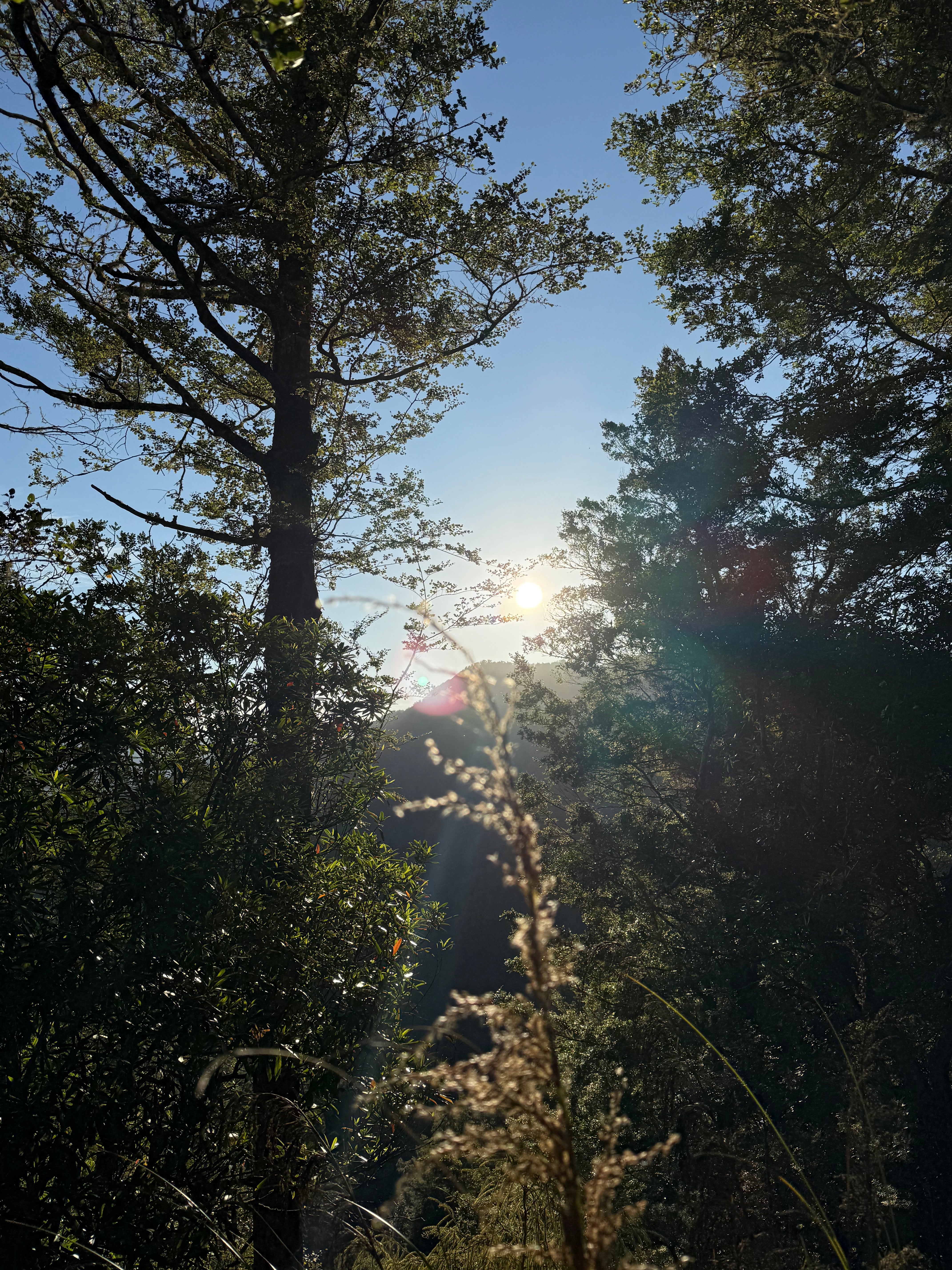 The valley's river keeps you company at first, its steady murmur following you along a dead-end road so quiet you might not see a single car. Then the climb begins. Up through landscapes that shift beneath your feet: open pasture giving way to shrubland, then suddenly you're in it. Proper native bush closing in around you.